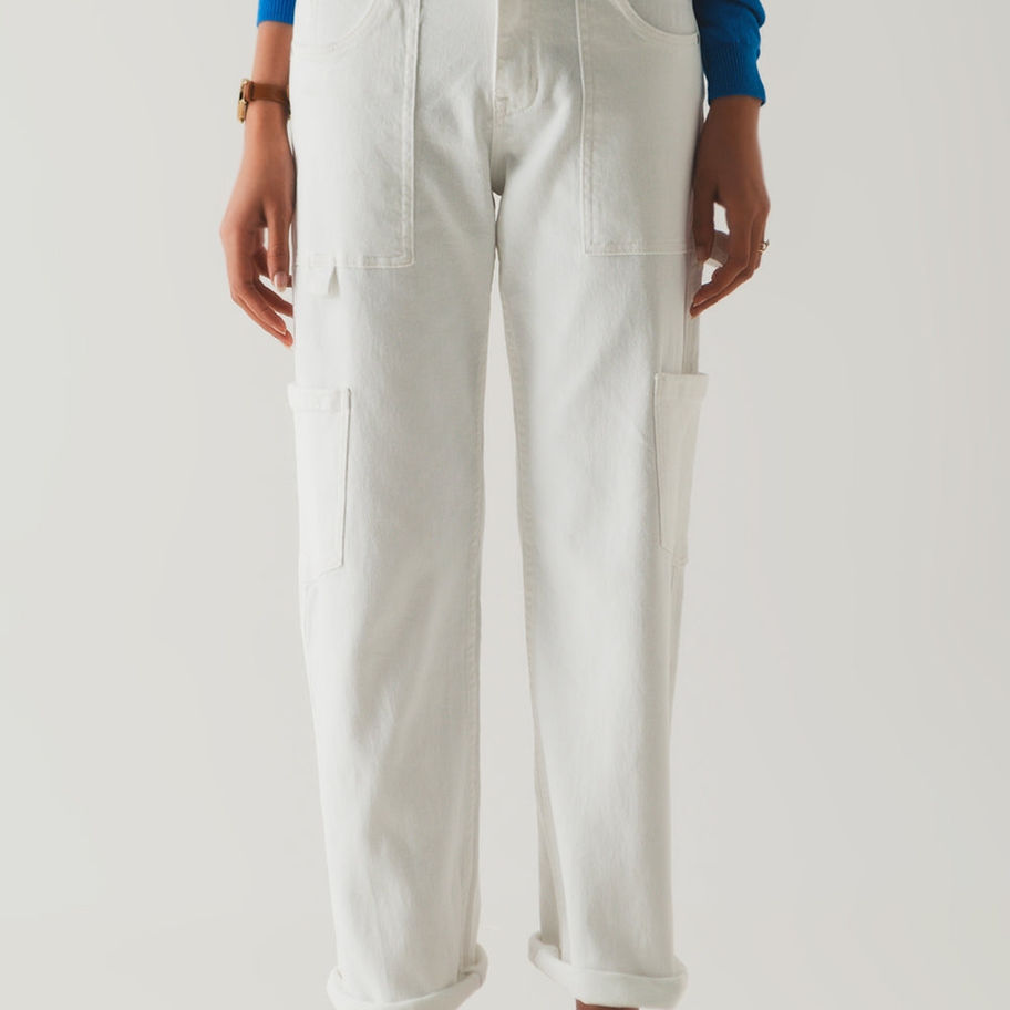 Length: Full length. Subcategory: Jeans. Fit: High rise . Leg: Wide leg. Style: Casual. Jean type: Basic. Detail: Belt loops. Fabric: Stretch denim. Pockets: Side and back pockets. Zipper: Zip fastening. Product details: Functional pockets. runs true to size. S.